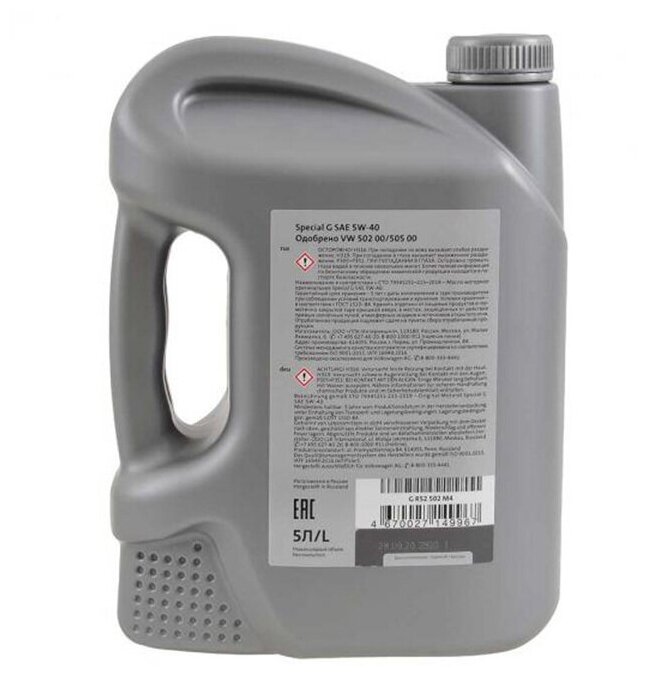 SAE viscosity grade: 5W-40, oil type: synthetic, fuel type: gasoline, OEM approvals: VW 502.00/505.00, VW 505.01