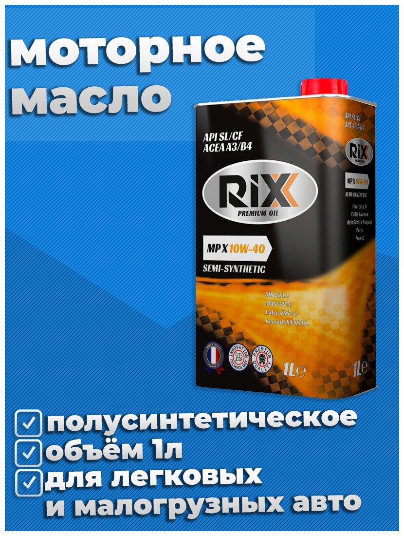 SAE viscosity grade: 0W-40, oil type: semi-synthetic, vehicle type: passenger cars, passenger cars and light duty vehicles, fuel type: gasoline, diesel, methane, API standard: SL/CF, ACEA standard: A3/B4