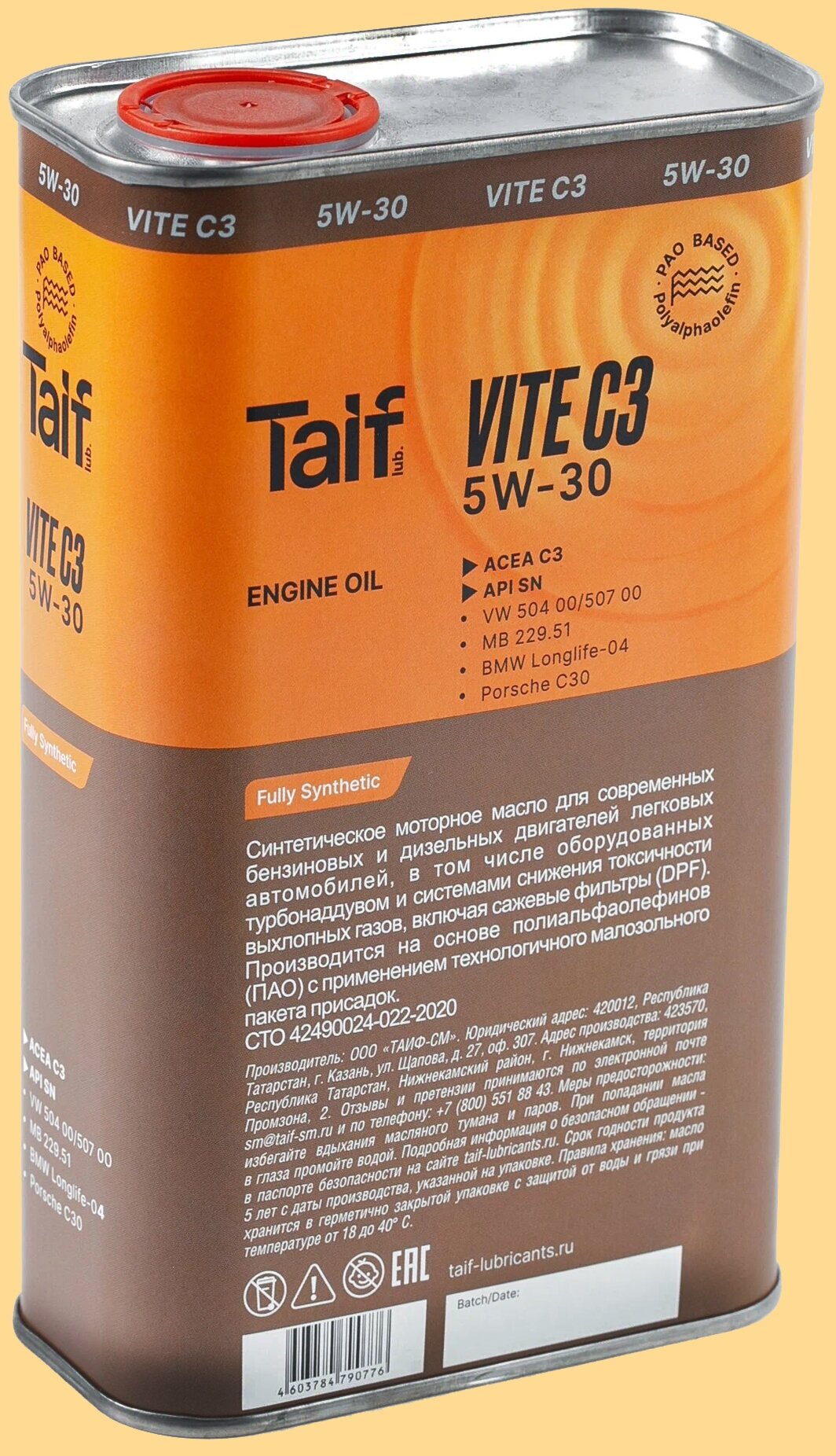SAE viscosity grade: 5W-30, oil type: HC-synthetic, synthetic, vehicle type: passenger cars, fuel type: gasoline, diesel, API standard: SN, ACEA standard: C3, OEM approvals: BMW Longlife-04, MB 229.51 , PORSCHE C30, VW 504.00, VW 507.00, MB-Approval 229.5