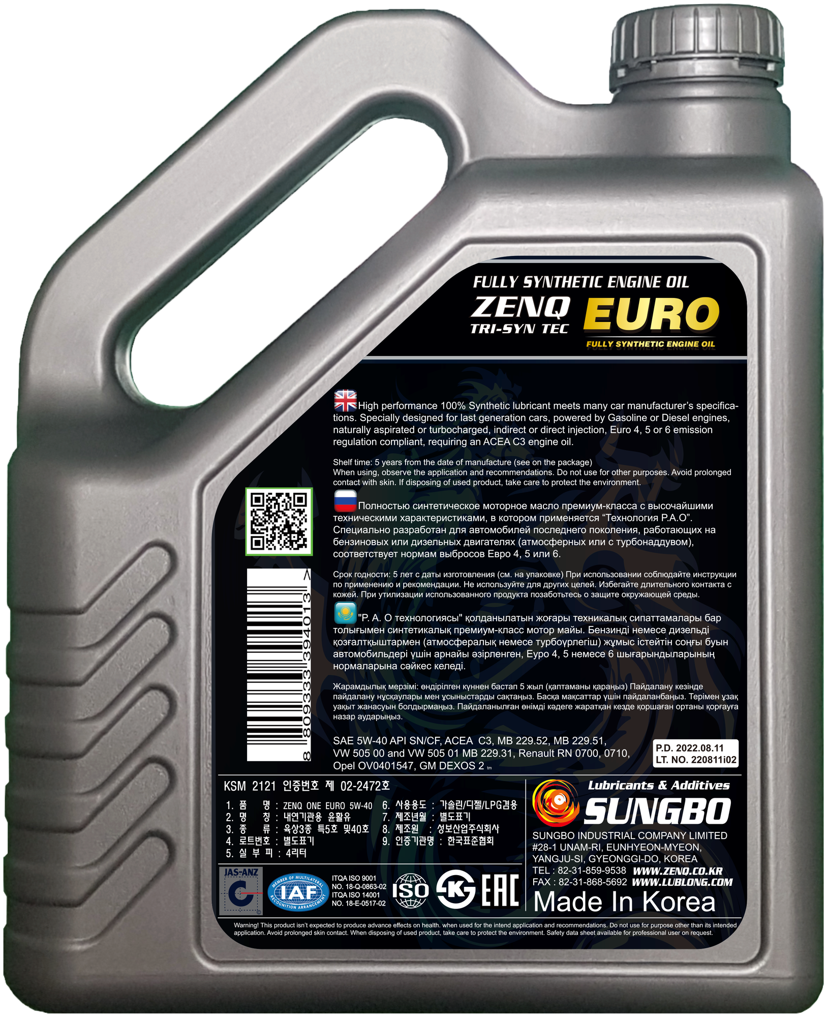 Motor. ZENQ ONE EURO 5W40 SN, C3 PAO 100% synth 4L