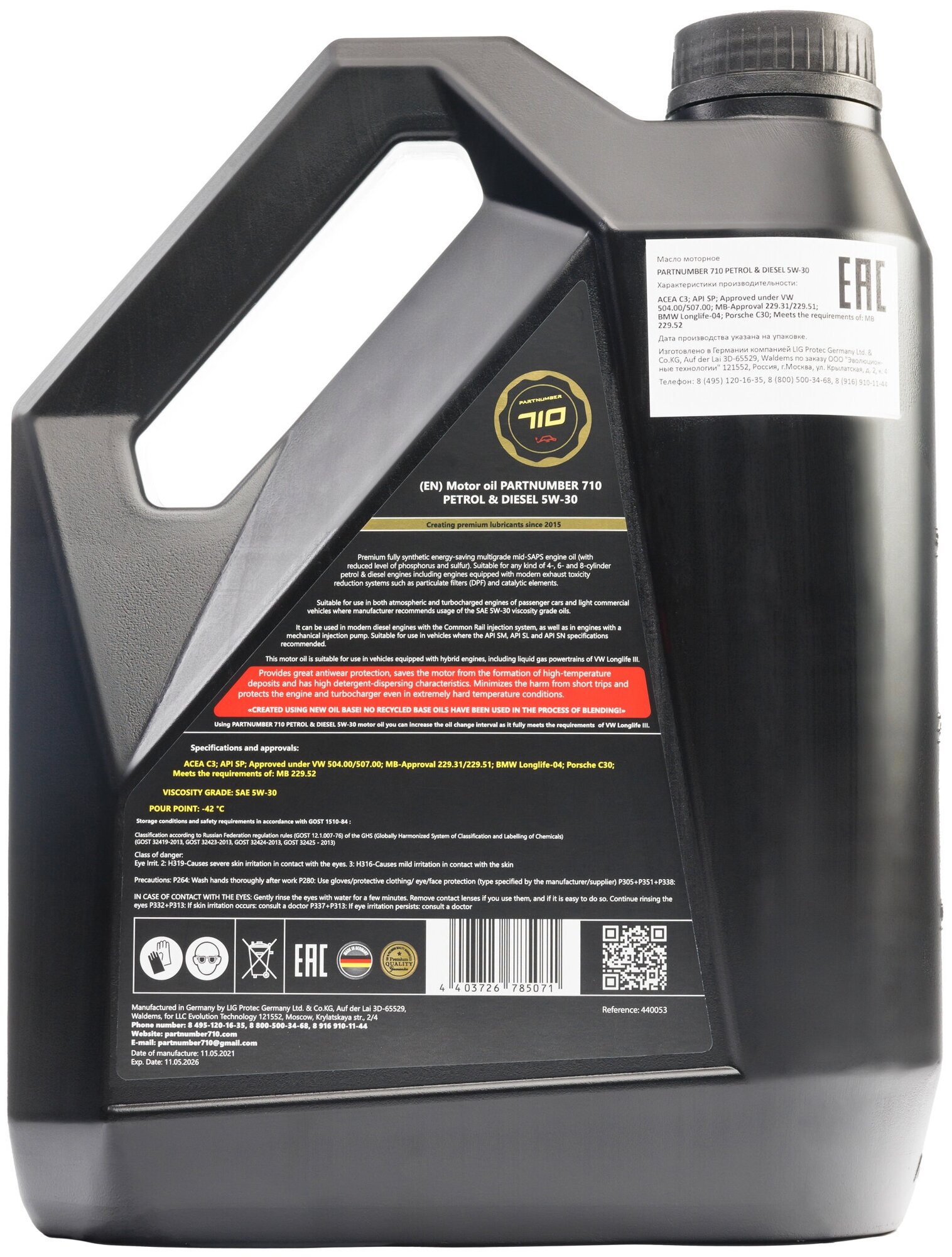 SAE viscosity grade: 5W-30, oil type: HC-synthetic, fuel type: gasoline, diesel, API standard: SP, ACEA standard: C3, OEM approvals: BMW Longlife-04, MB 229.31, MB 229.51, PORSCHE C30, VW 504.00, VW 507.00, engine type: four-stroke, for turbocharged engin