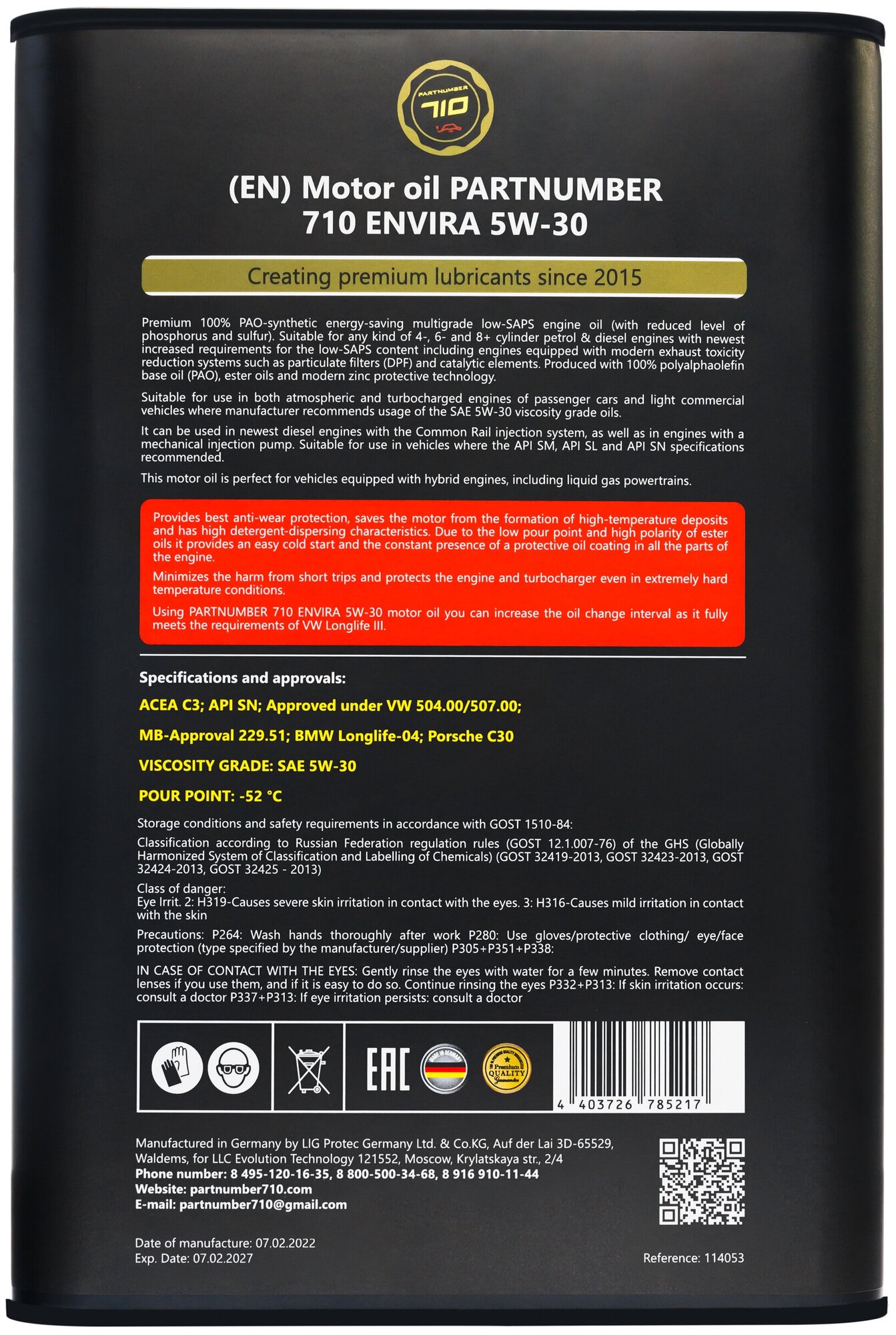 PARTNUMBER 710 Envira 5W-30