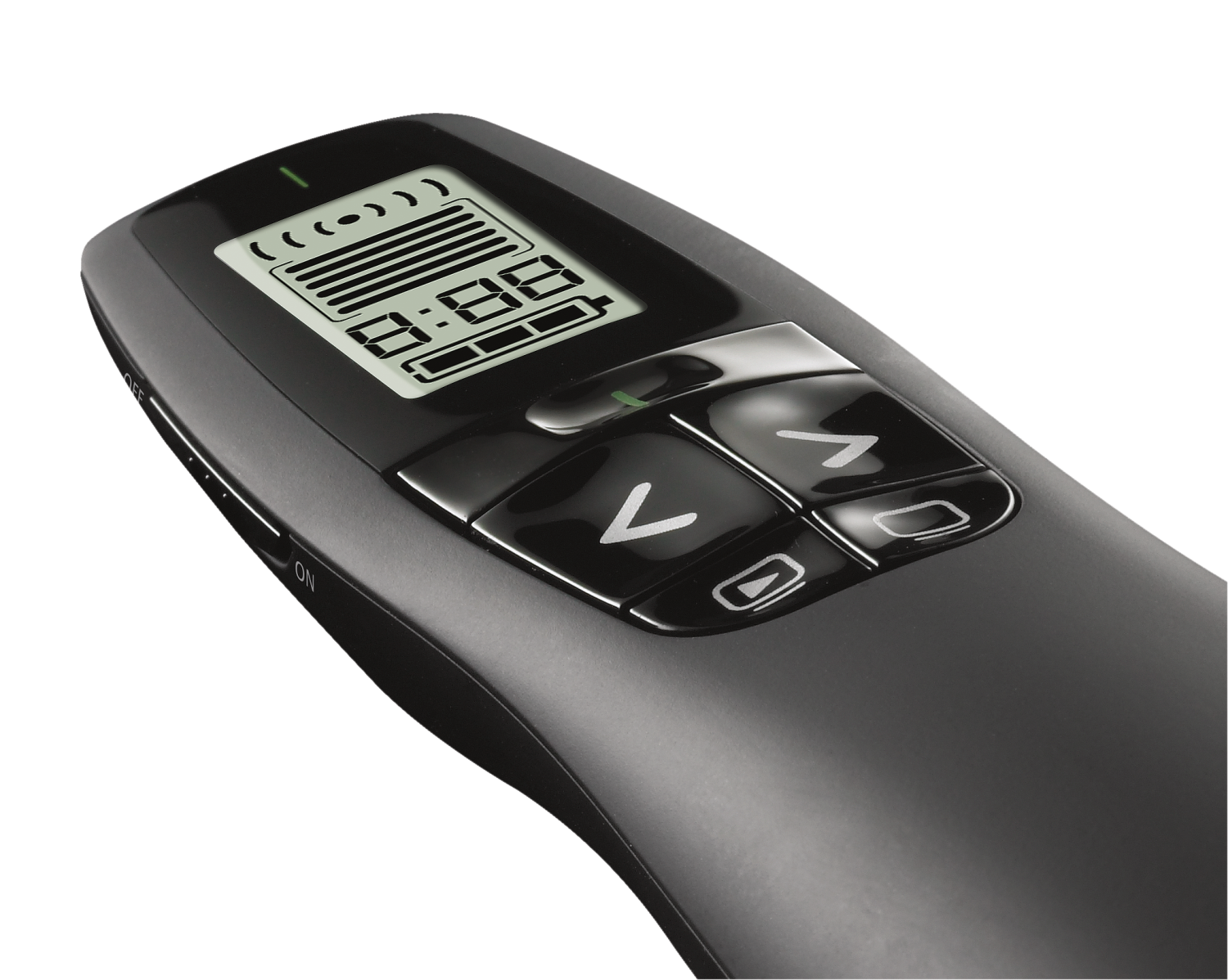 Control type: buttons, connection interface: USB, laser pointer, functionality: start playback, stop playback, slide switching, features: vibration, display, battery charge indicator, storage compartment