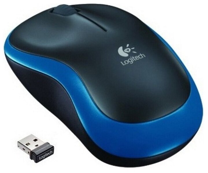 Wireless LOGITECH M185, 2 buttons + 1 button wheel, optical, black/blue, 910-002239