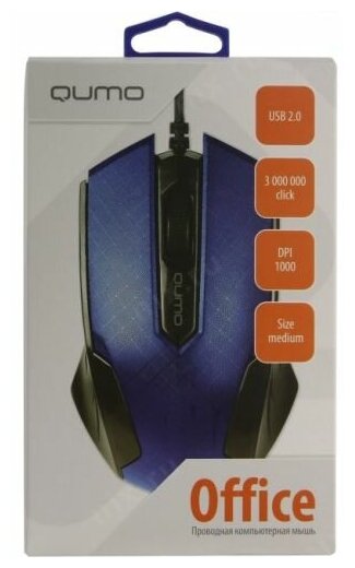 Wired Qumo Office M14 3 buttons, 1000dpi blue