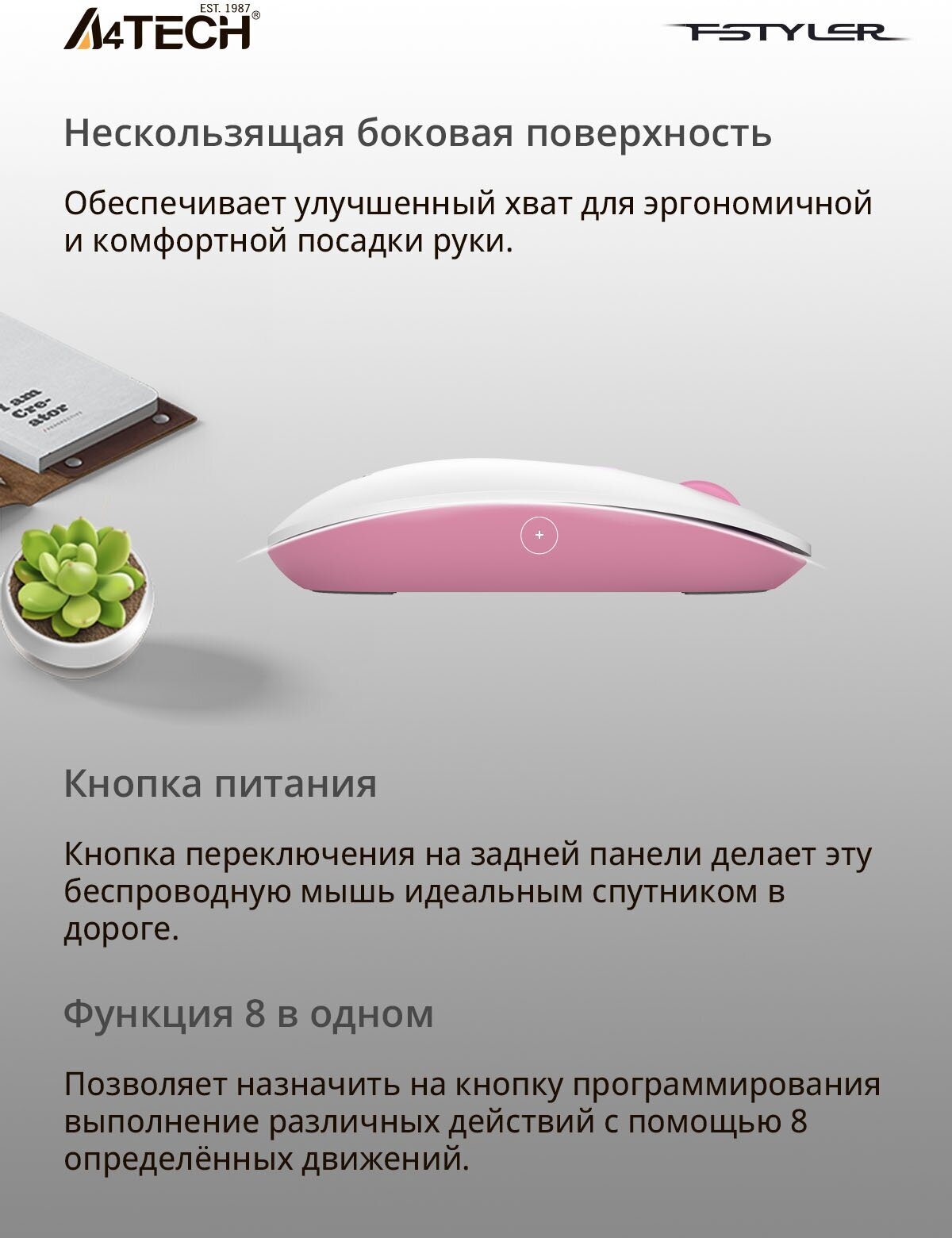 A4Tech Fstyler FG20 Sakura whitepink optical 2000dpi wireless USB 4but