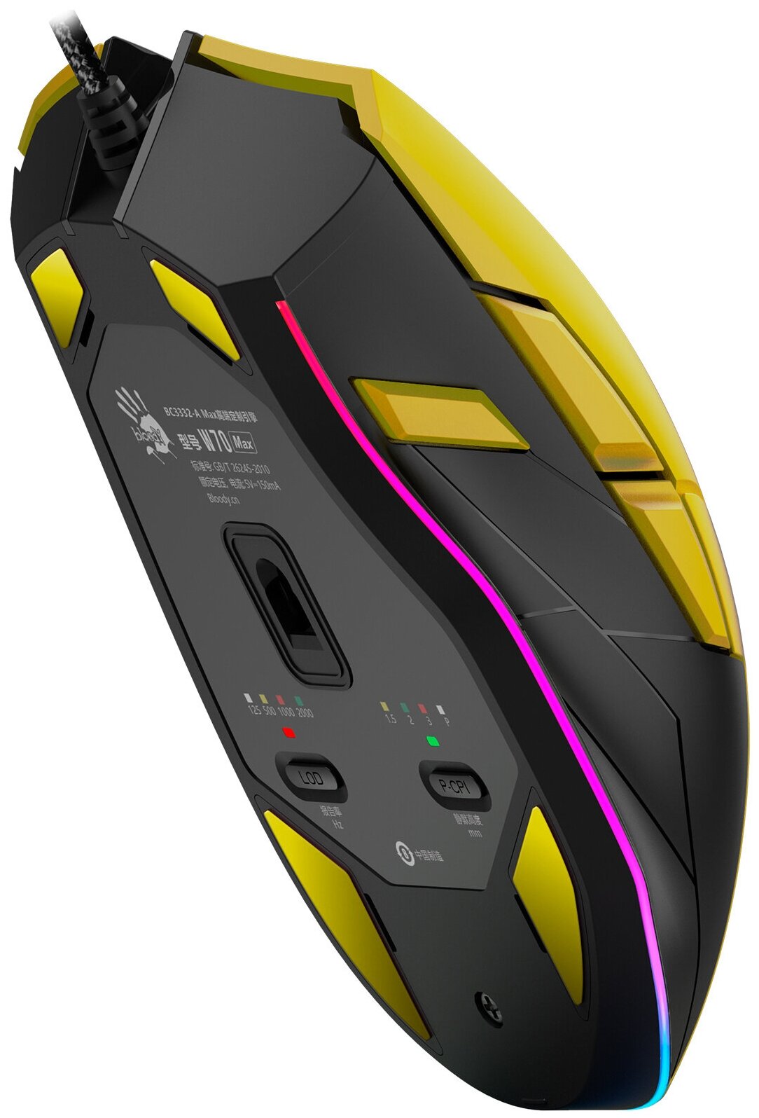 Connection interface: USB Type A, design: right-handed, operating principle: optical LED, number of keys: 9, optical sensor resolution: 10000 dpi, cable length: 1.80 m, features: backlight