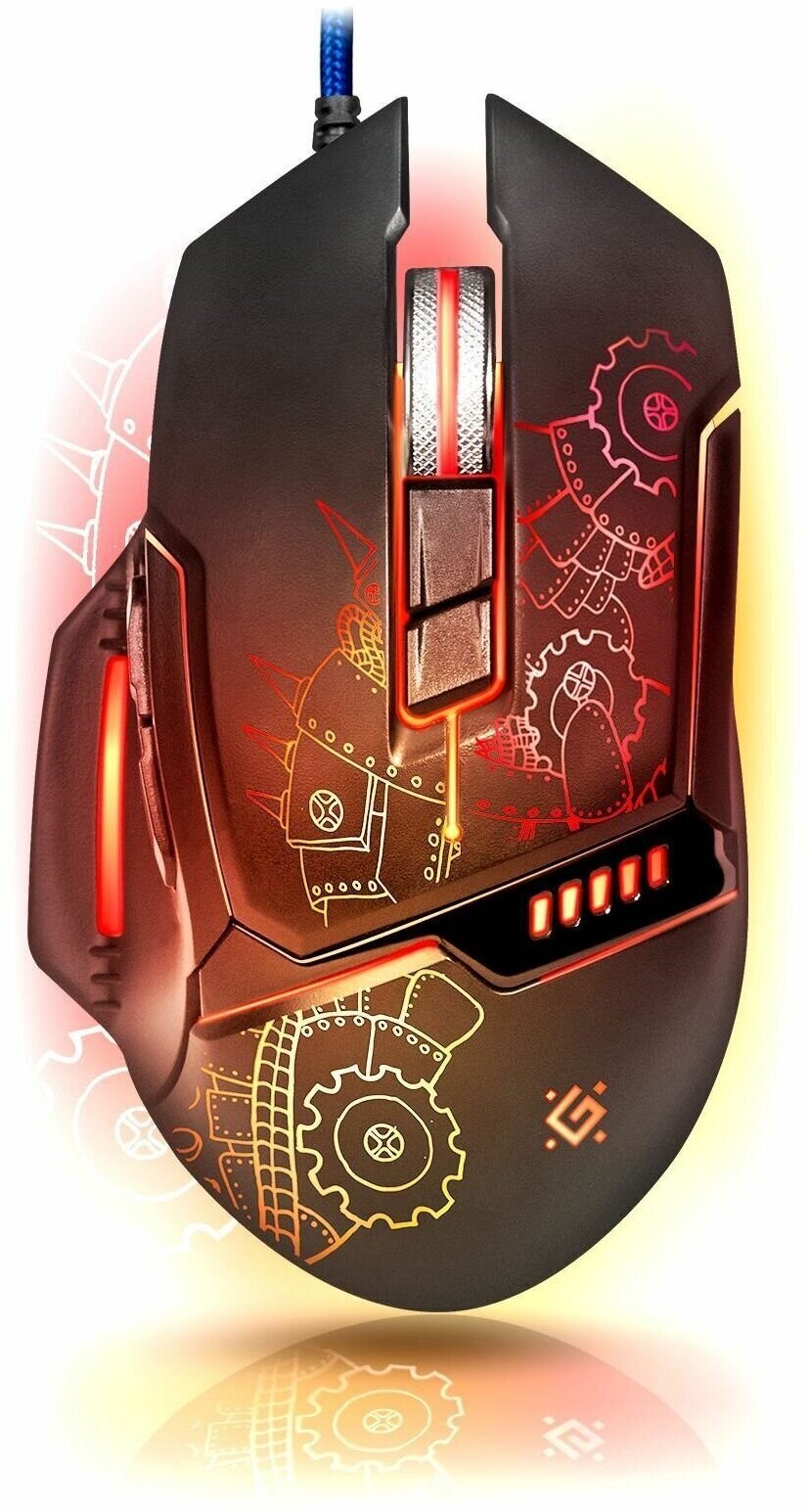 4 mouse resolution modes: 1200/1600/2400/3200 dpi; Defender Game Center software; macro editor; emulation of keyboard keys; gold-plated USB connector; 2 additional side buttons, thumb rest, functions