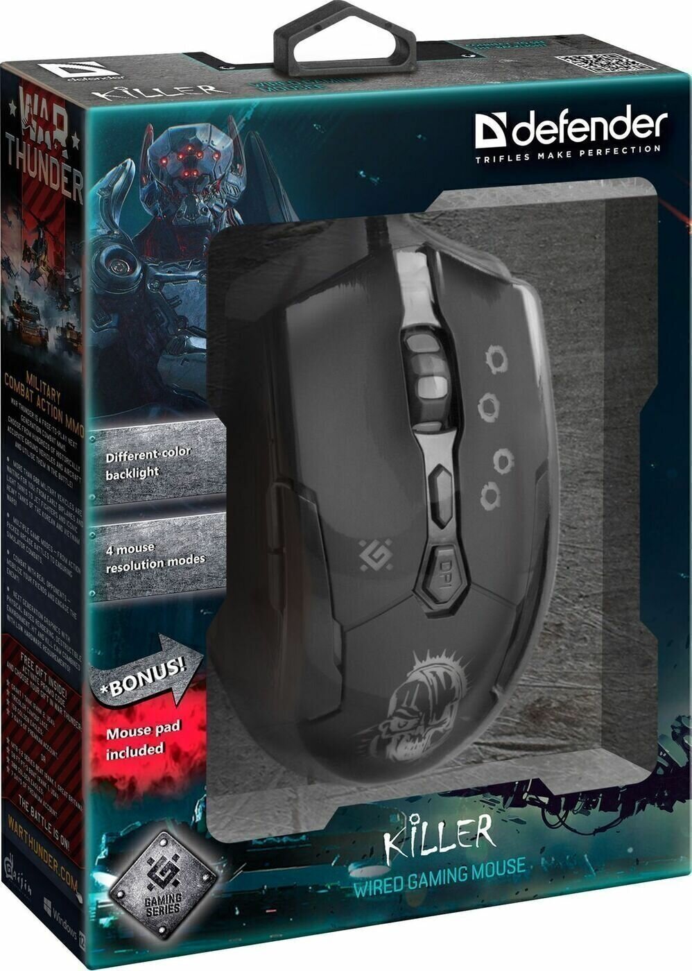 Wired gaming DEFENDER Killer GM-170L, USB, 6 buttons + 1 button wheel, optical, black, 52170