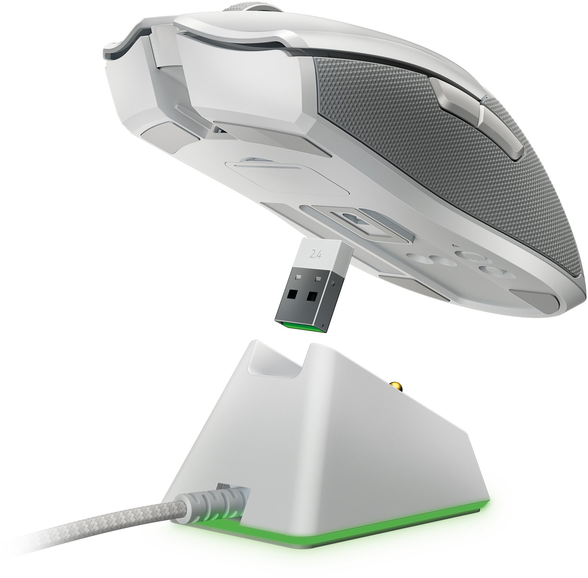 Razer Viper Ultimate gaming mouse, Razer charging dock; Wireless USB transmitter 2.4 GHz stored inside the mouse, adapter for wireless USB transmitter, charging cable, instruction manual