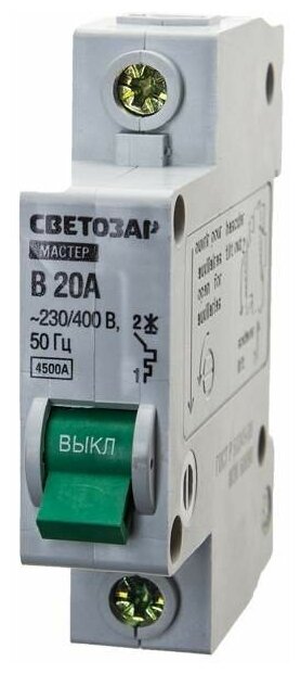 Type: circuit breaker, breaking capacity: 6 kA, rated voltage: 220/380 V, voltage type: AC, trip type: B, protection class: IP20, DIN rail mounting