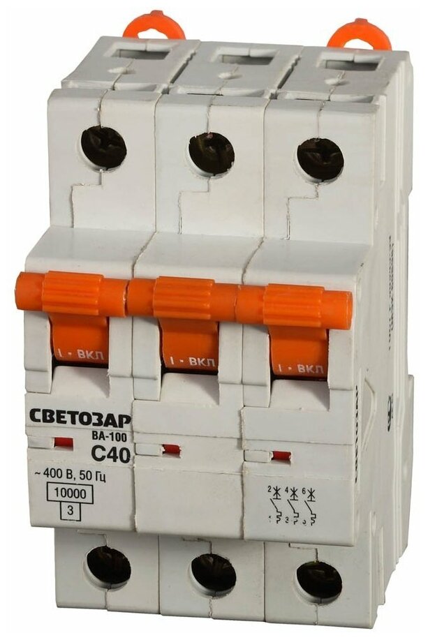 Type: circuit breaker, breaking capacity: 10 kA, rated voltage: 380 V, voltage type: AC, trip type: C, protection class: IP20, DIN rail mounting