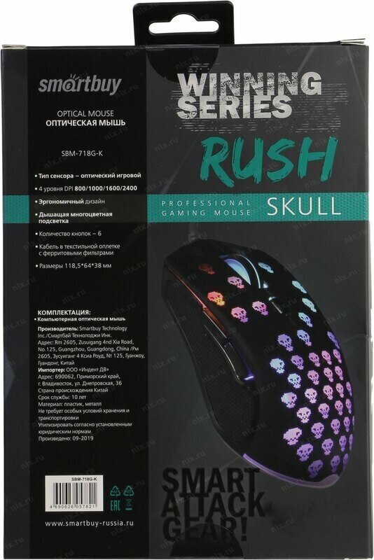Connection interface: USB Type A, design: right-handed, number of keys: 6, optical sensor resolution: 2400 dpi, cable length: 1.50 m, features: backlight