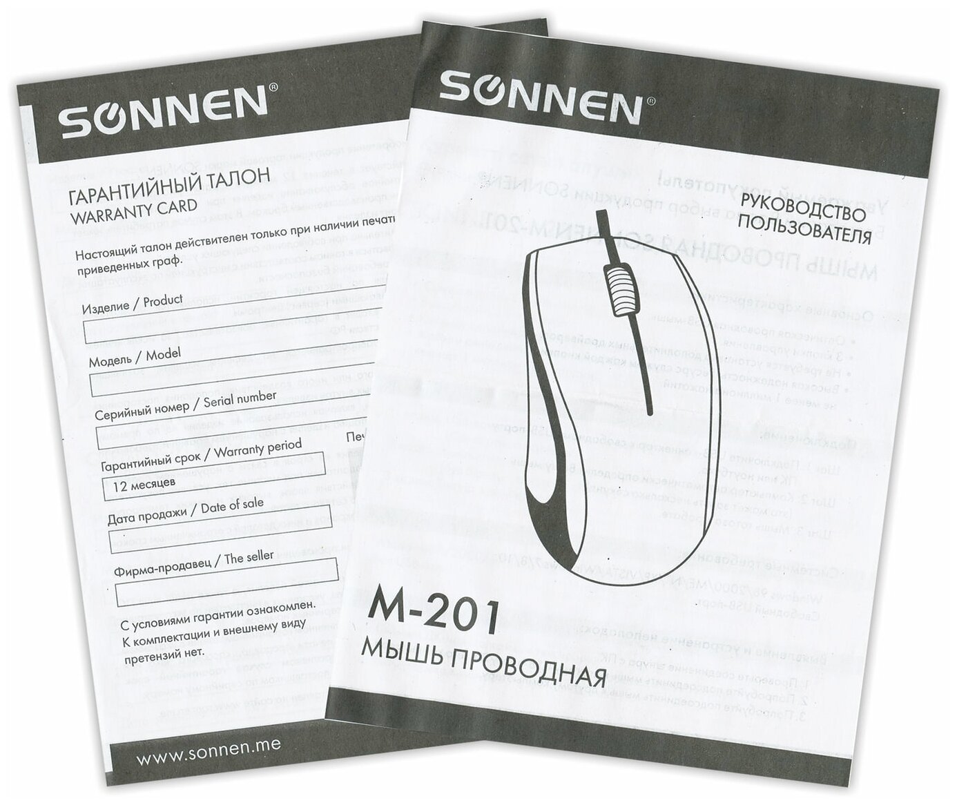 Wired SONNEN M-201, USB, 1000 dpi, 2 buttons + wheel-button, optical, black, 512631