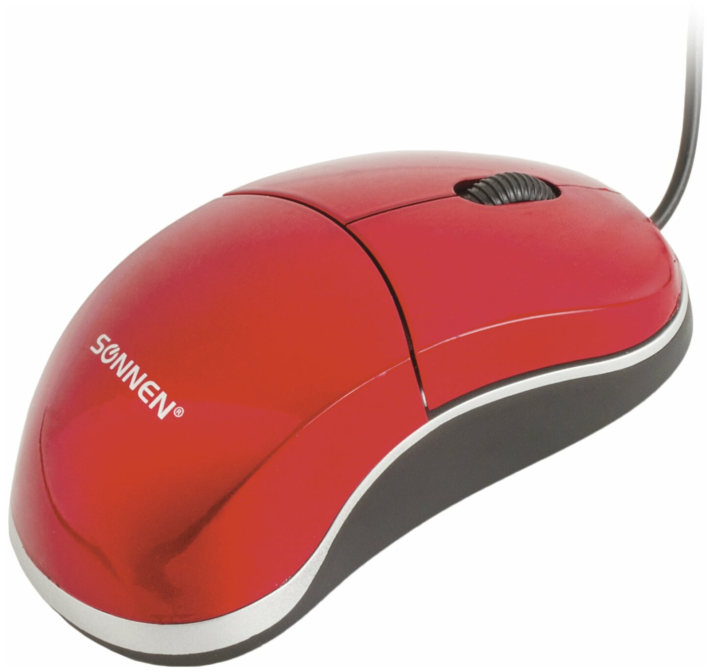 Wired SONNEN M-2241R, USB, 1000 dpi, 2 buttons + 1 wheel-button, optical, red, 512635