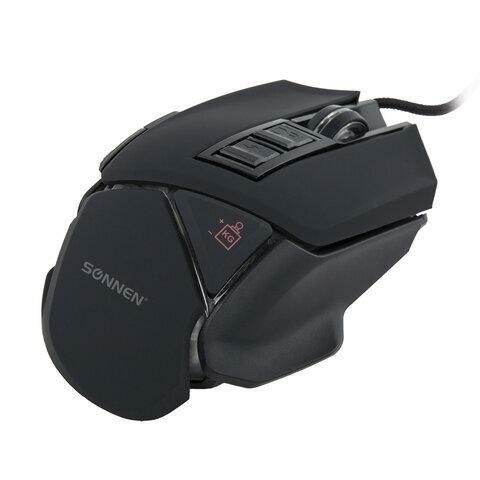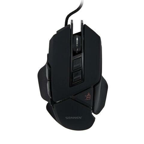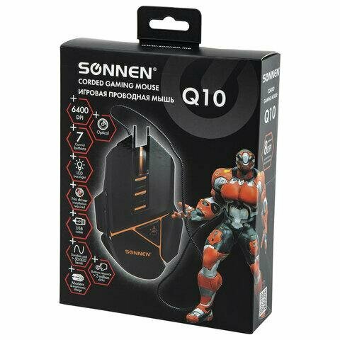 / wired computer mouse for computer and laptop gaming Sonnen Q10, 7 buttons, programmable, 6400 dpi, Led-backlit, black