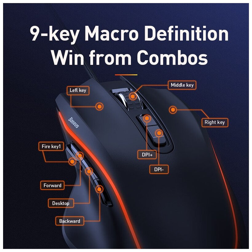 Baseus GAMO 9 Programmable Buttons Gaming Mouse Black GMGM01-01