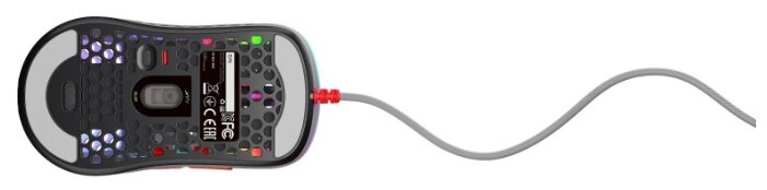 Mouse, 2 kaycaps, spare Teflon feet, branded sticker, replacement panels for the case