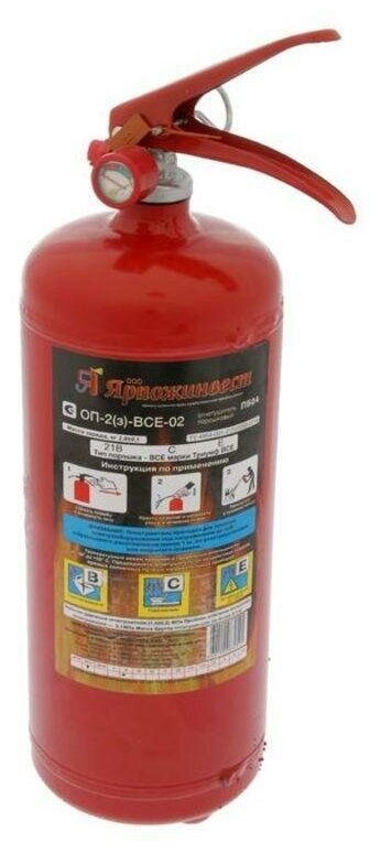 Fire extinguisher OP-2 2 kg in a metal case, powder, pump-in, with a pressure gauge; Warning triangle RFT-06 complies with international standard; knitted gloves with protective PVC coating