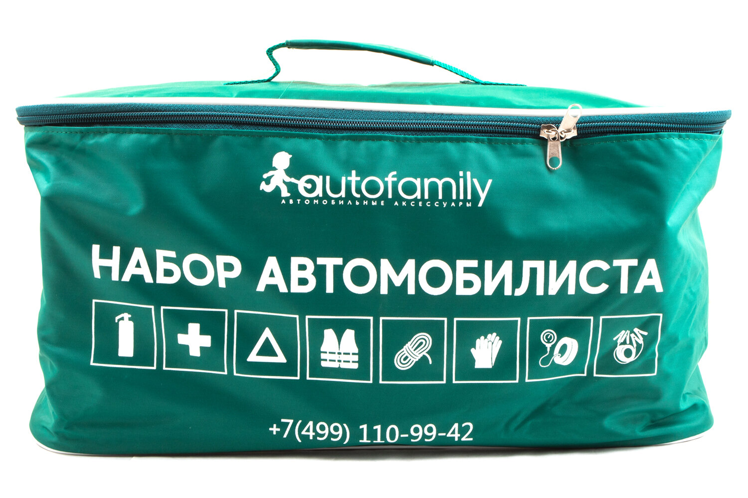 First aid kit, reflective vest, warning triangle, compressor, gloves, jumper wires, tow rope