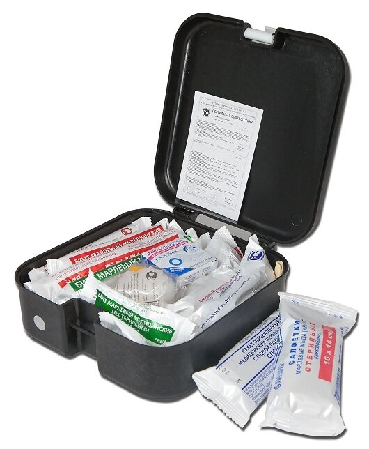 First aid kit, warning triangle, fire extinguisher, tow rope