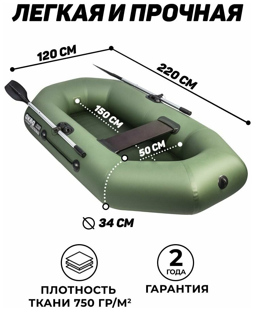 Type: rowing, number of places: 1.5, bottom type: non-inflatable, floorboard type: not included, boat material: reinforced PVC, load capacity: 170 kg, boat length: 220 cm, boat width: 120 cm, weight: 11 kg, transom: missing