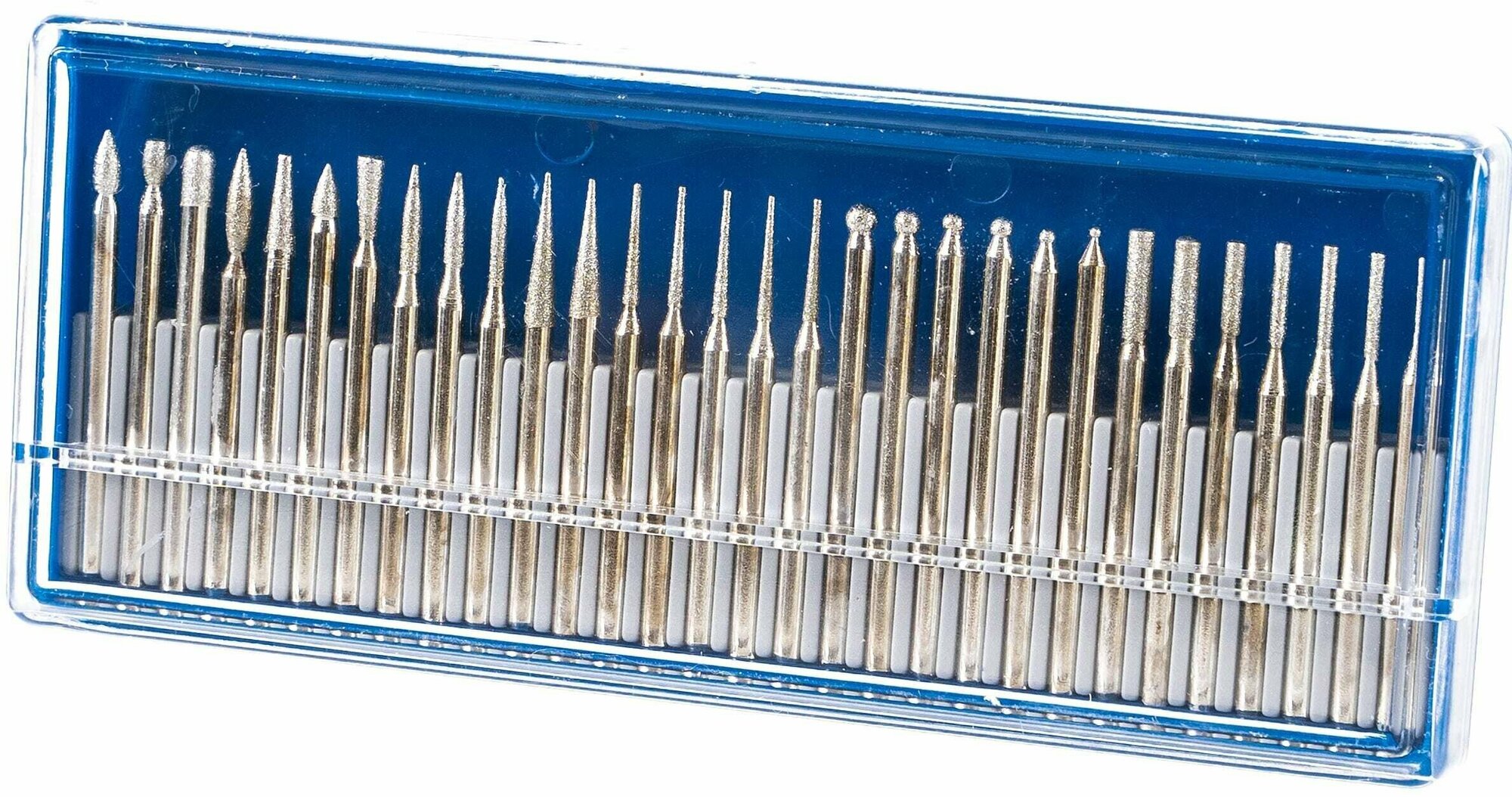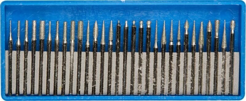 Type: burr, purpose: grinding, work materials: ceramics, metal, plastic, glass, set, number of items: 30 pcs., shank diameter: 3 mm, case