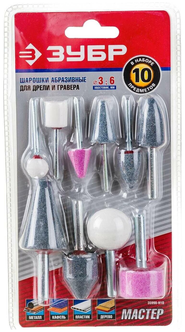 Type: burr, purpose: cleaning, grinding, processed materials: wood, metal, plastic, set, number of items: 10 pcs.