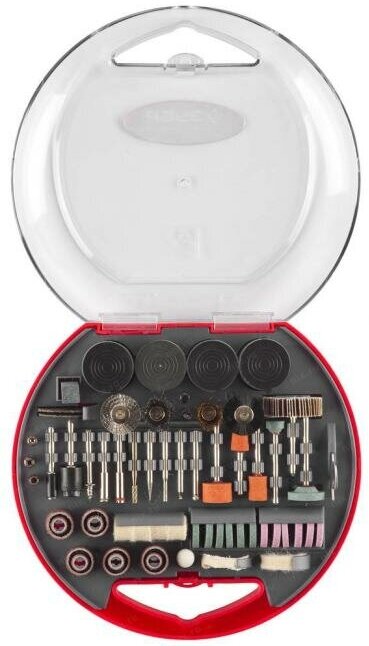 Set complete set: abrasive tapes — 30 pieces; nozzles polishing disc - 2 pcs.; cylindrical felt nozzles - 12 pcs.; felt cone nozzles - 2 pcs.; rubber polishing nozzle - 1 pc.; drill bits for metal