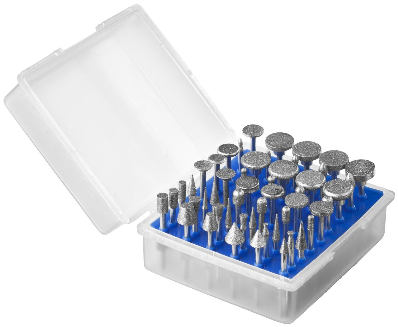Type: burr, purpose: grinding, for wood, for metal, for plastic, workpieces: glass, set, number of pieces: 50 pcs., grit P: 180, shank diameter: 3 mm