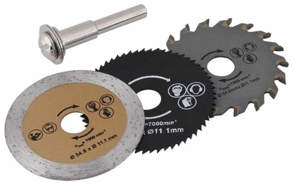 Type: circle, purpose: cutting, processed materials: wood, ceramics, metal, set, number of items: 3 pcs., shank diameter: 6 mm