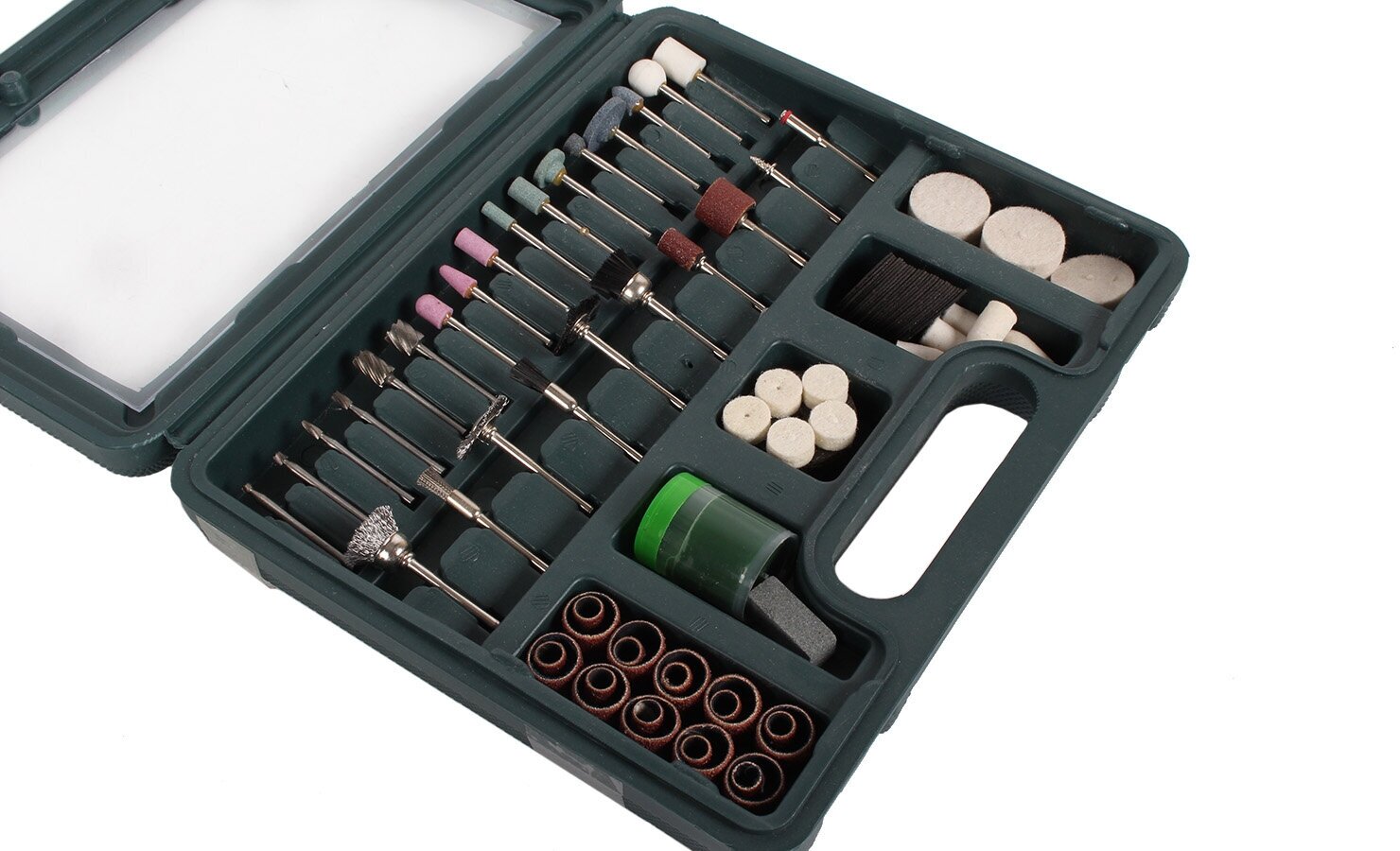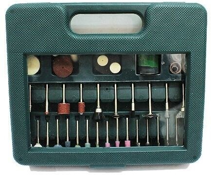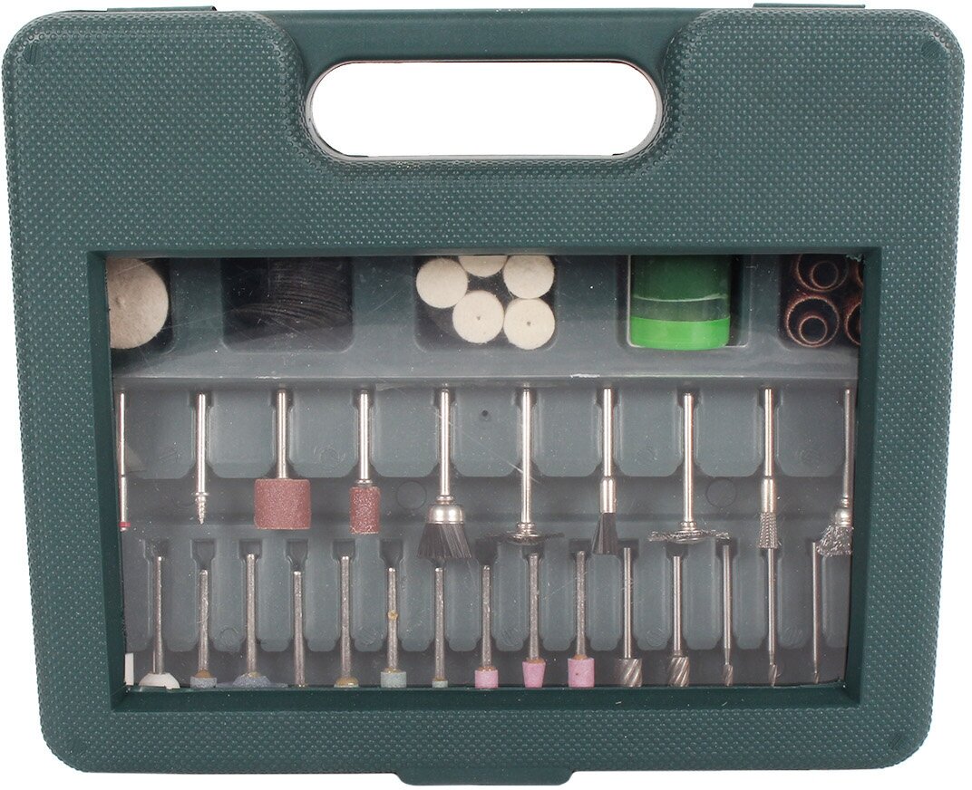 Type: burr, holder, circle, paste, brush, purpose: engraving, cleaning, grinding, work materials: wood, ceramics, metal, plastic, glass, set, number of items: 100 pcs., case