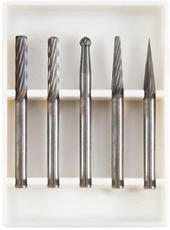 Type: burr, purpose: engraving, cutting, work materials: metal, set, number of items: 5 pcs., shank diameter: 3 mm, case