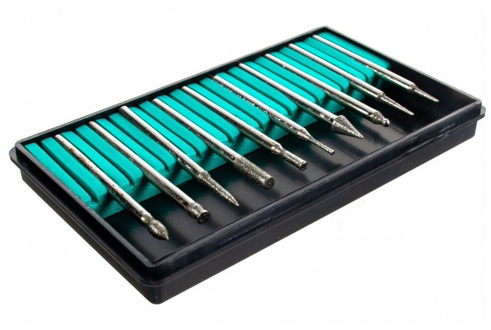 Type: burr, purpose: engraving, set, number of items: 10 pcs., shank diameter: 3 mm, case