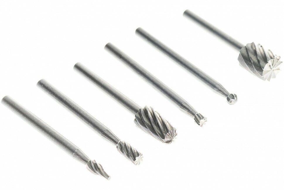Type: burr, purpose: engraving, cutting, milling, work materials: metal, set, number of items: 6 pcs., shank diameter: 3.10 mm