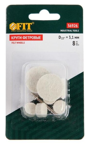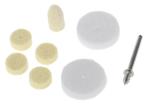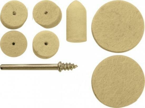 Type: circle, purpose: polishing, work materials: wood, metal, plastic, set, number of items: 8 pcs., shank diameter: 3.10 mm