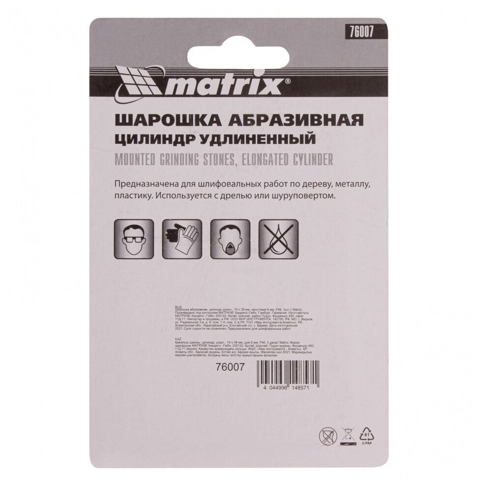 Type: burr, cylinder, purpose: grinding, work materials: wood, metal, plastic, glass, set, number of pieces: 3 pcs., shank diameter: 6 mm