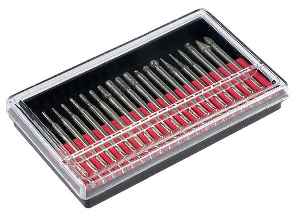 Type: burr, purpose: engraving, grinding, work materials: wood, ceramics, metal, set, number of items: 20 pcs., shank diameter: 3 mm