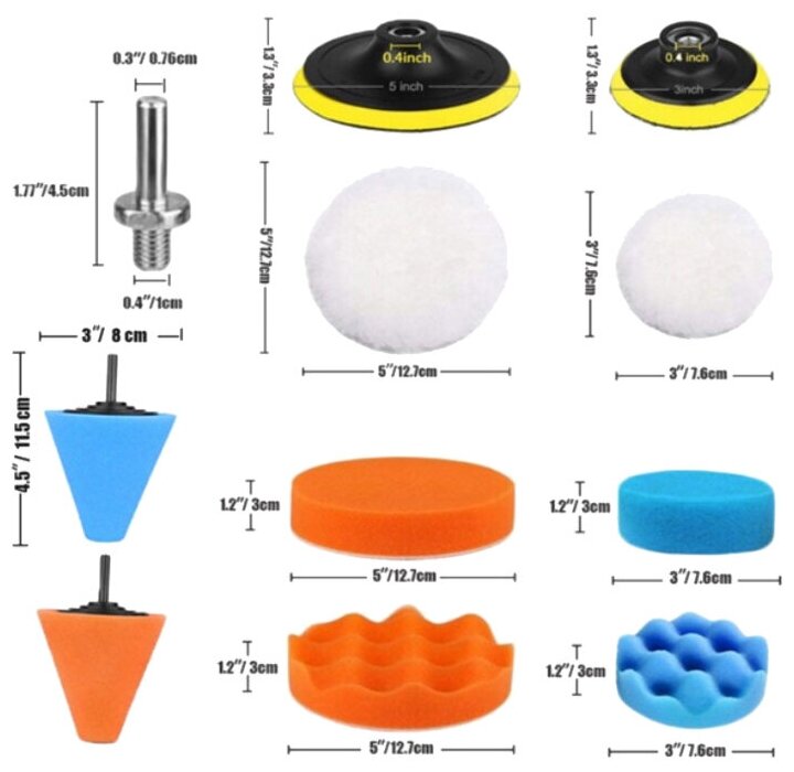 A set of sponge disks, circles nozzles on a drill for polishing the body, glass, car rims 12 items