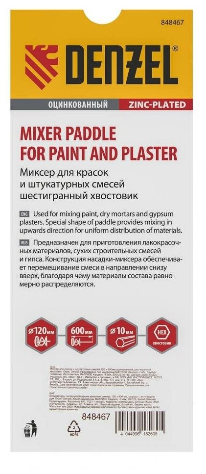 Paints and plaster mixtures, 120-600 mm, galvanized, 10mm Denzel hexagon socket