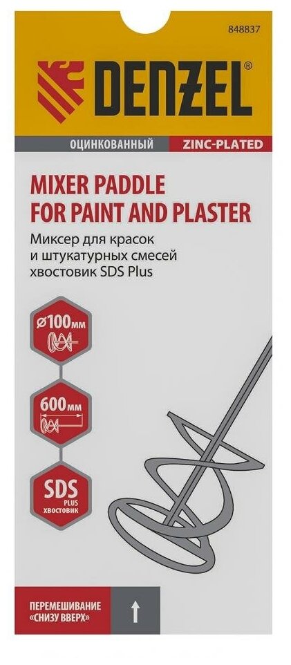 Paints and plaster mixtures Denzel, 848837, 100-600 mm, galvanized, SDS Plus wafer