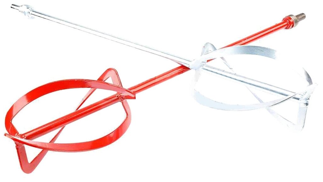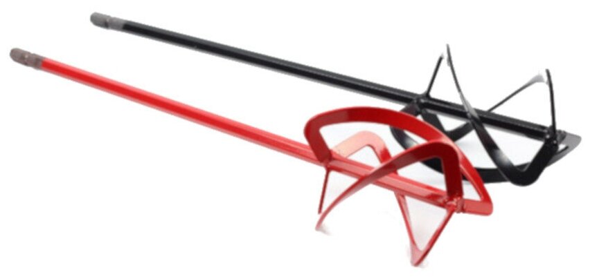 The number of nozzles in the package - 2; body color - red, silver; for dry mixes; for liquid mass; for adhesives; for paint; for mortars
