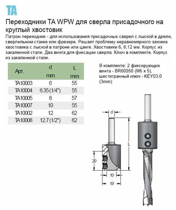 Adapter WPW TA10002 for round shank filler drill 12_S, TA10002