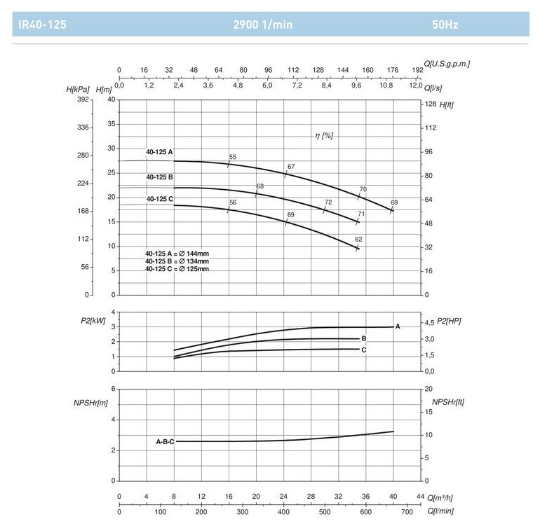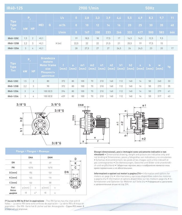 Pump console-monoblock flange SAER IR 40-125B, kW 2.2