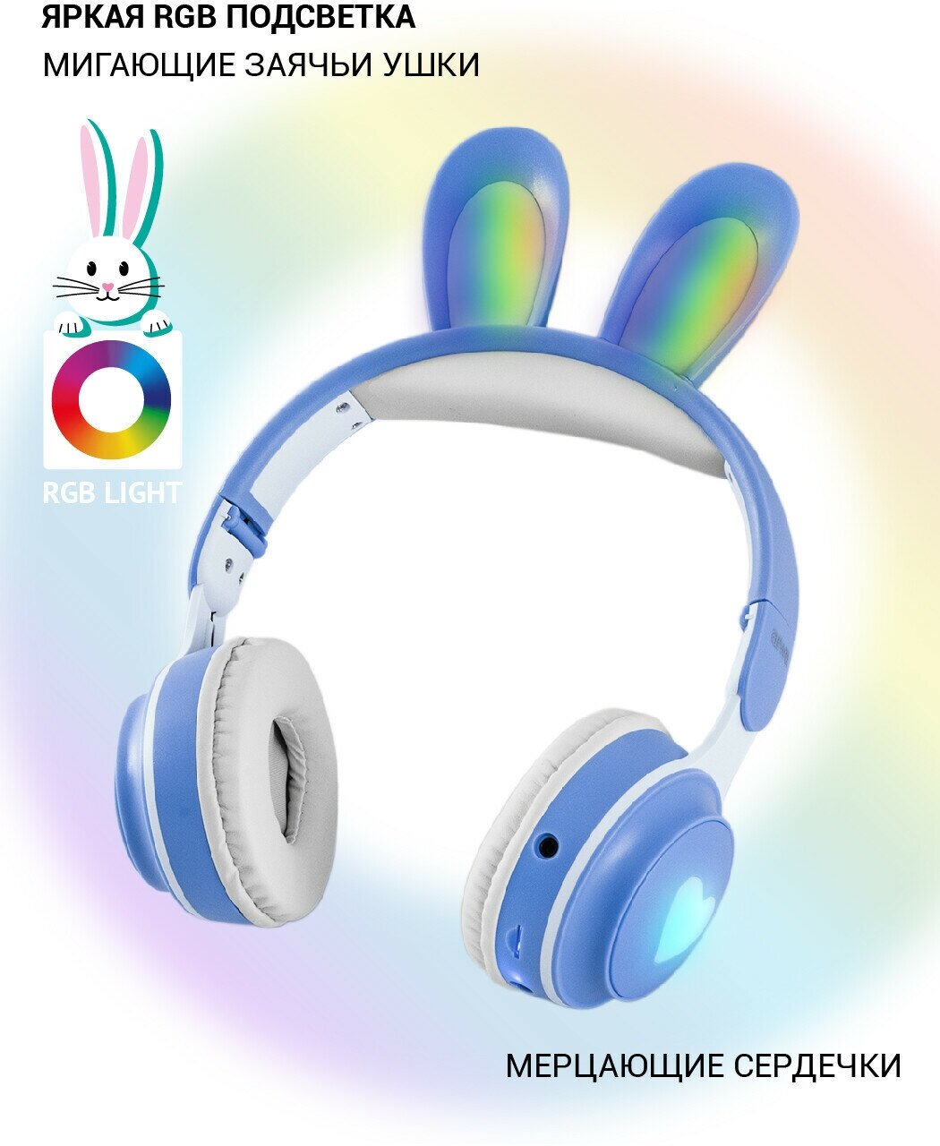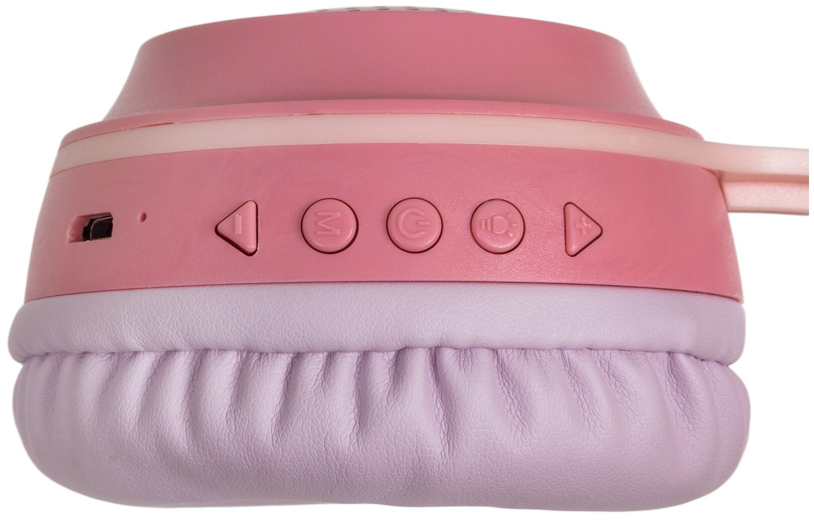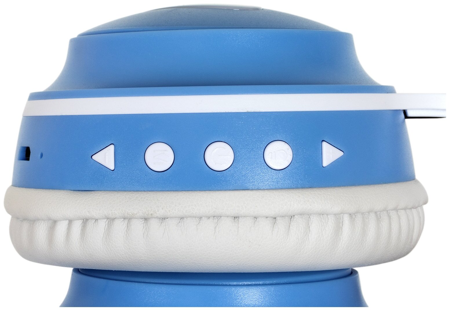 Design: full-size, device type: wireless headphones, design features: for children, microphone, light, foldable design, plug connector: USB, functions: FM radio, MP3 player, operating time: 12 h