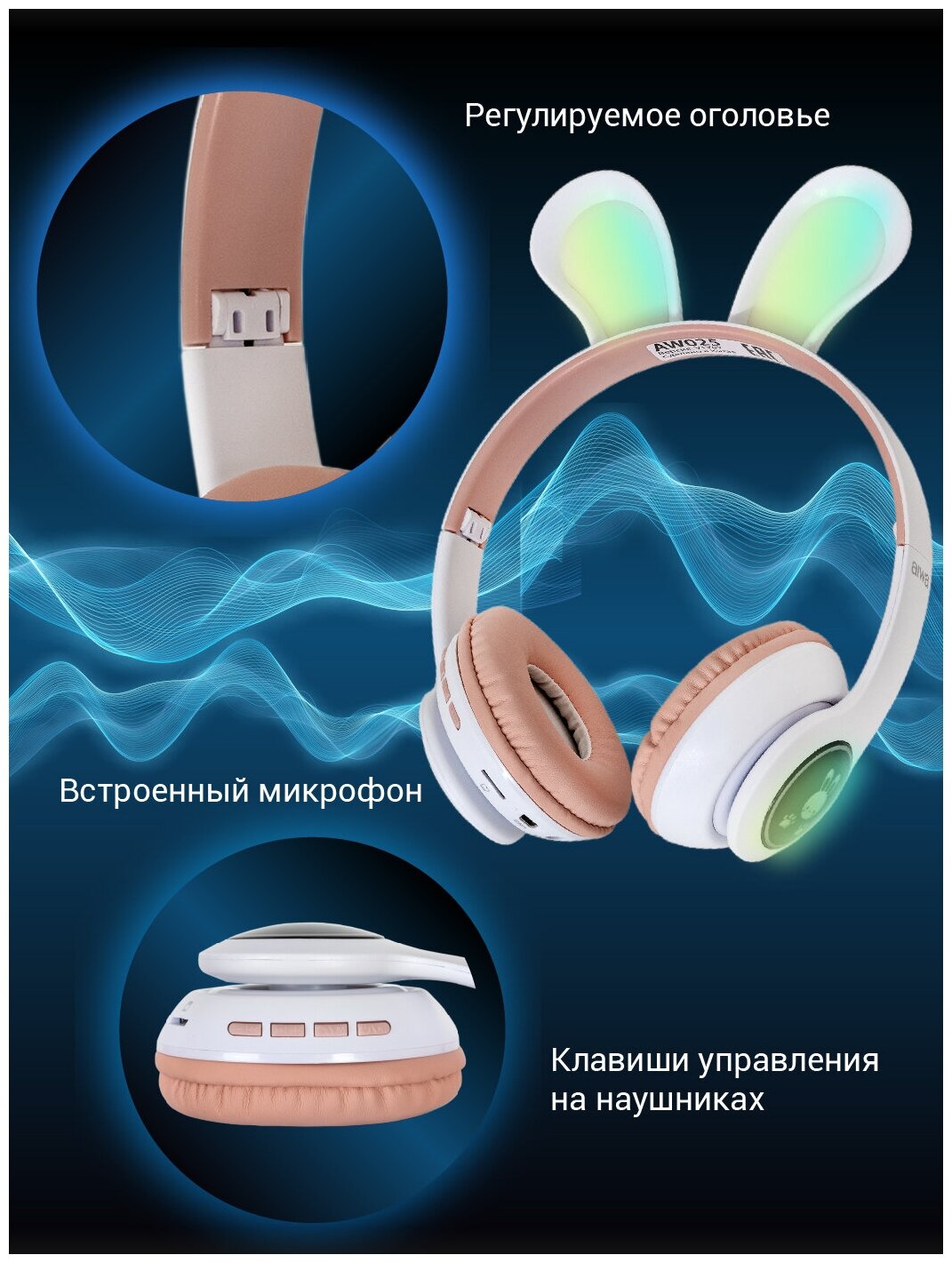 Design: full-size, device type: wireless headphones, design features: for children, microphone, backlight, foldable design, plug connector: USB, functions: FM radio, MP3 player, operating time: 6 h
