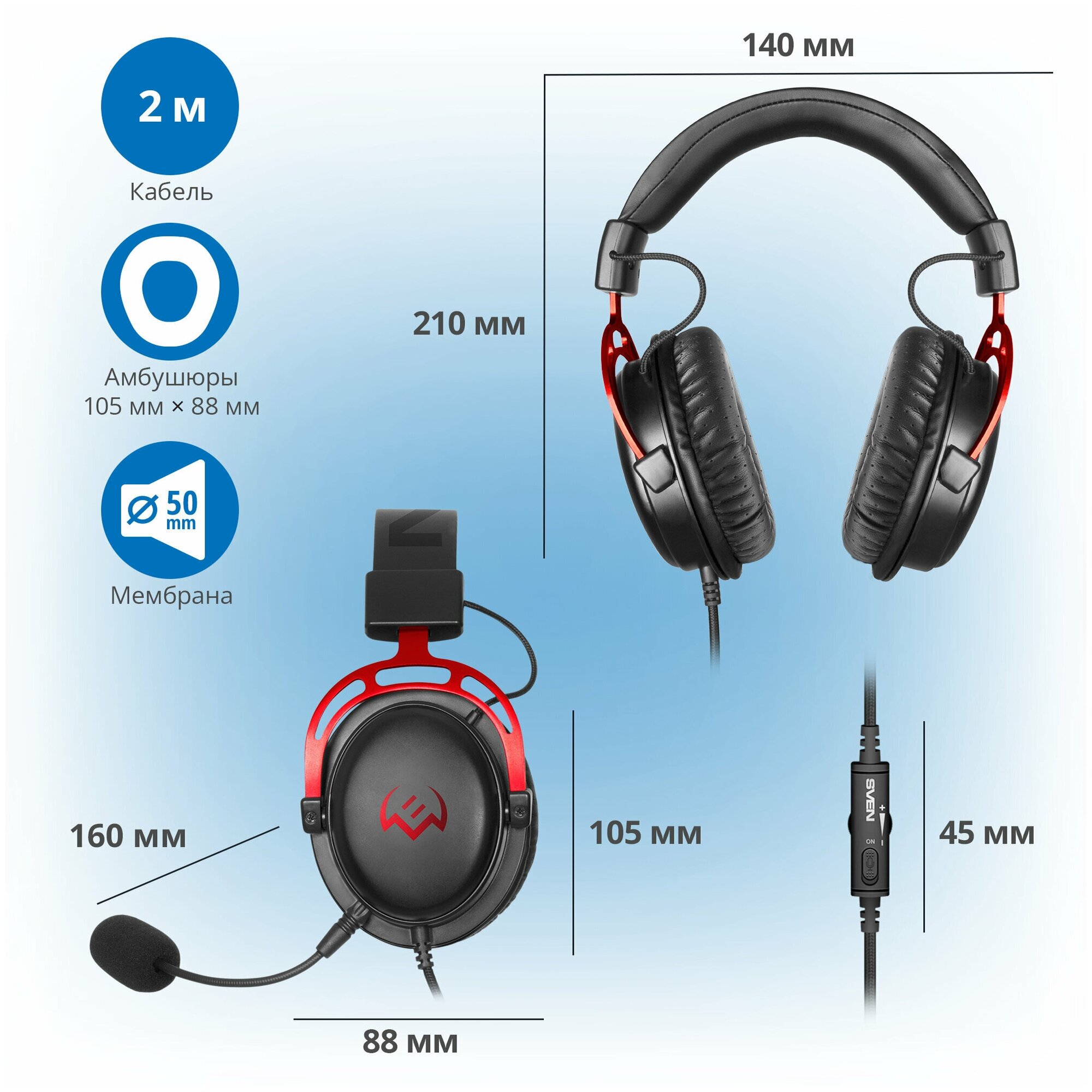 Headphones SVEN AP-G1000MV, black-red