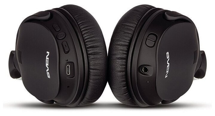 Sven AP-B900MV wireless stereo headphones, detachable audio cable with microphone, USB to micro USB power cable, headphone case, user manual, warranty card