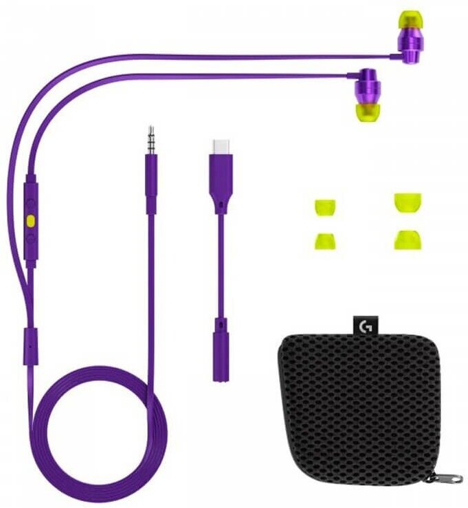 G333 gaming headphones, 3 sizes s, m and l eartips, usb-c adapter, travel case, user documentation