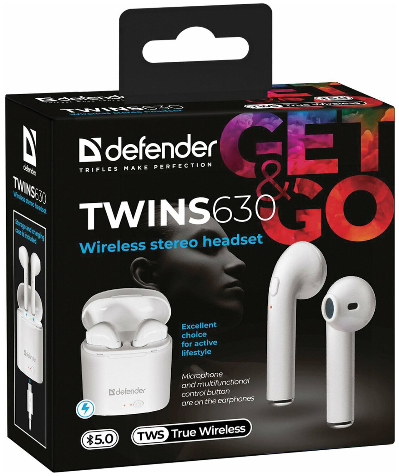 Headphones with microphone headset DEFENDER TWINS 630, Bluetooth, wireless, white